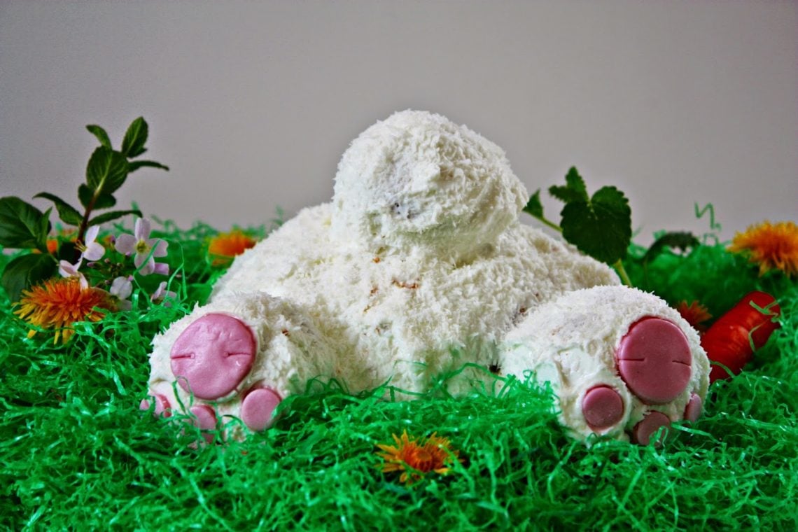 Ein absoluter Klassiker: Der süße Hasen-Popo aus saftigem Eierlikör-Rührteig und Kokos-Frosting!