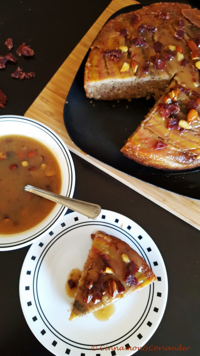 Served with the warmed maple toffee sauce this Banana Upside Down Cake is moist and decadent like a delicious sticky toffee pudding – with the added bonus of banana!