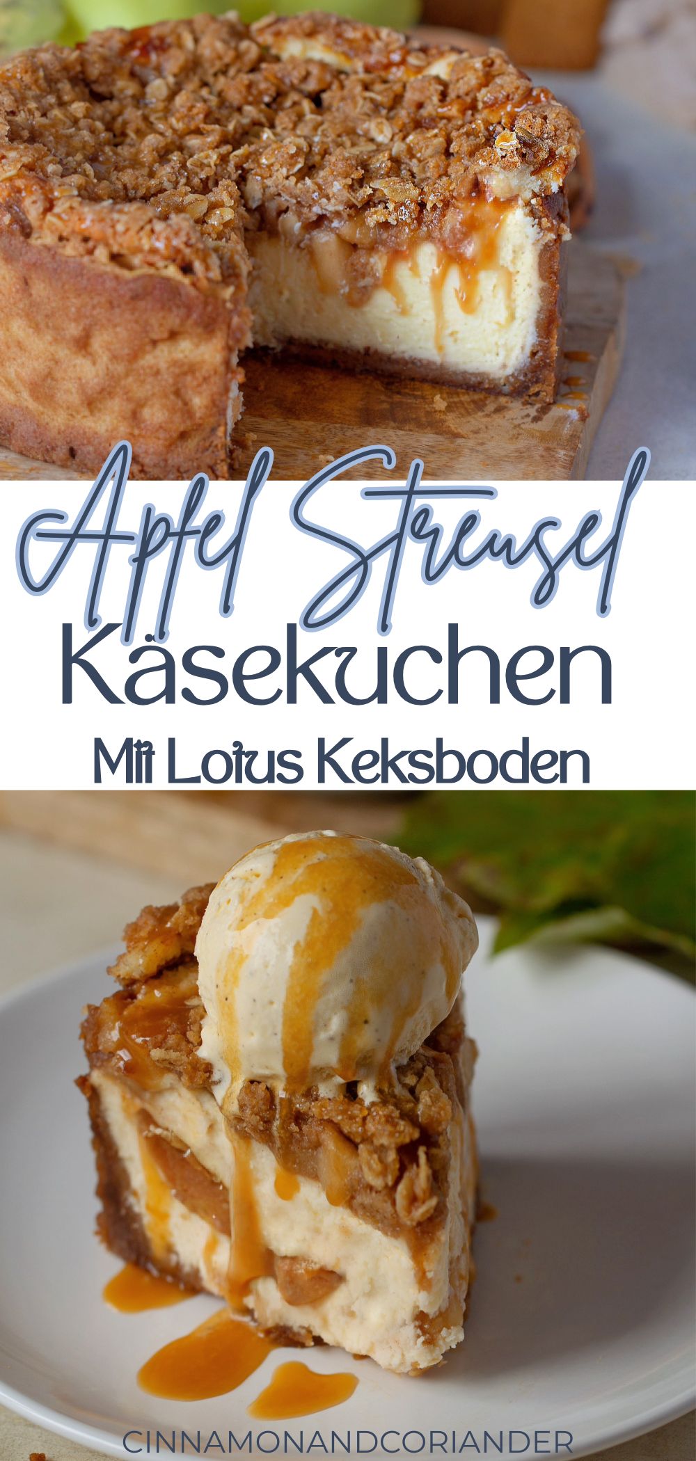 Bester Apfel Käsekuchen mit Keksboden & Streuseln