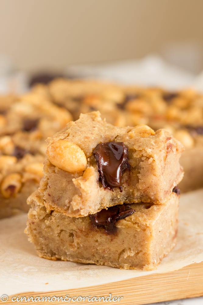 Super einfache Bohnen-Blondies mit Erdnussbutter und knackigen Schokoladen- Stückchen.