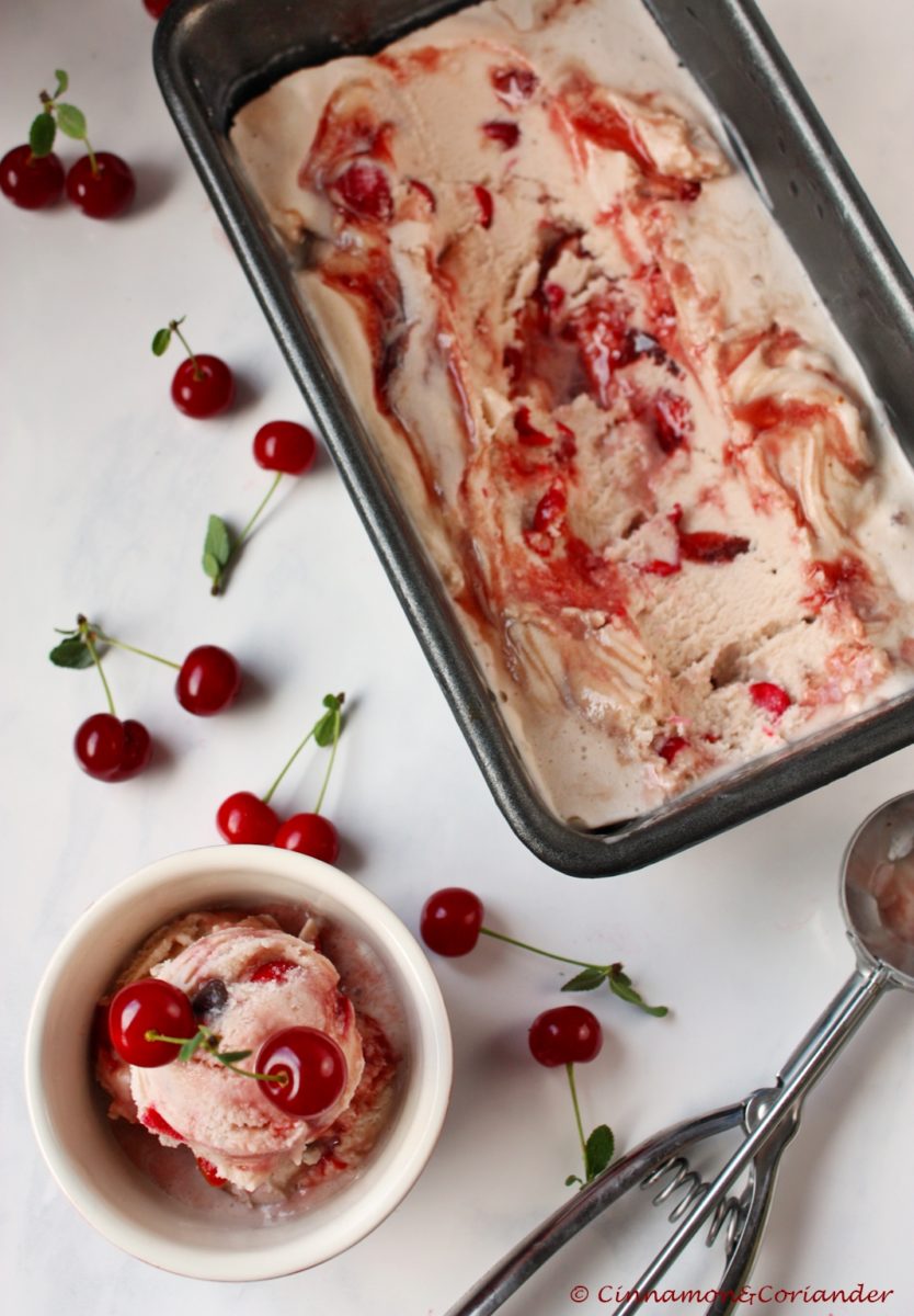 Frische Kirschen und etwas dunkle Schokolade machen die Eiscreme Kreation perfekt.