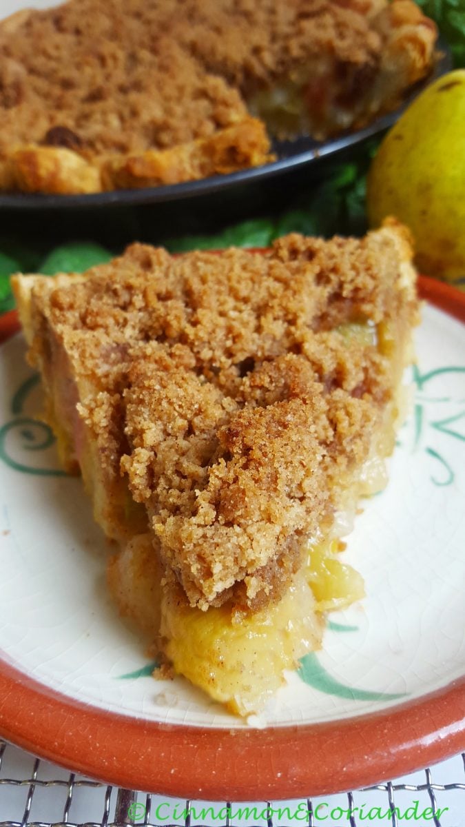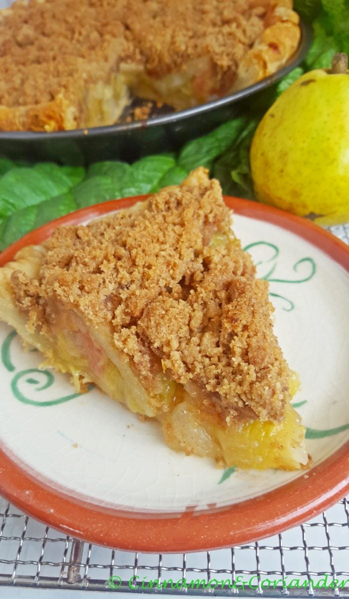 Birnen Rhabarber Crumble Pie mit Ingwer