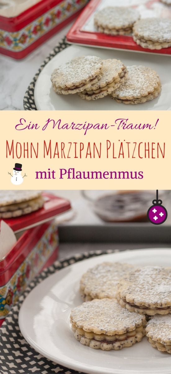 Heute zeige ich euch das Rezept für meine neuen Lieblingsplätzchen! Zarte Mohn Marzipan Plätzchen mit fruchtigem Pflaumenmus und einer Extraportion Marzipan gefüllt. Ohja, wer Marzipan liebt, der wird diese Plätzchen besonders genießen, denn hier kommt Marzipan in Teig und Füllung.