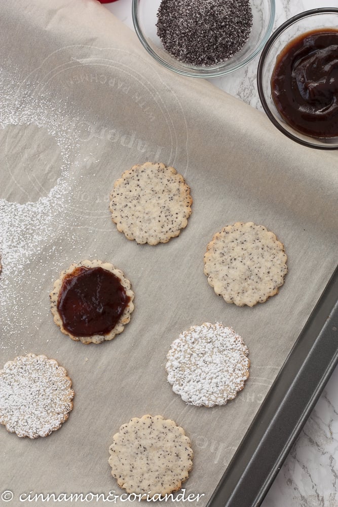 Poppy Seed Marzipan Sandwich Cookies filled with marzipan and plum jam