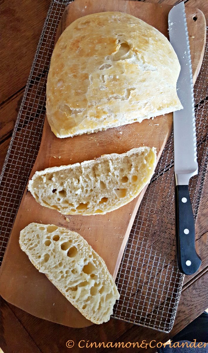 Das No Knead Bread bekommt eine herrliche Knusperkruste und eine lockere Krume sowie einen leicht säuerlichen Geschmack von der Gärung über Nacht.