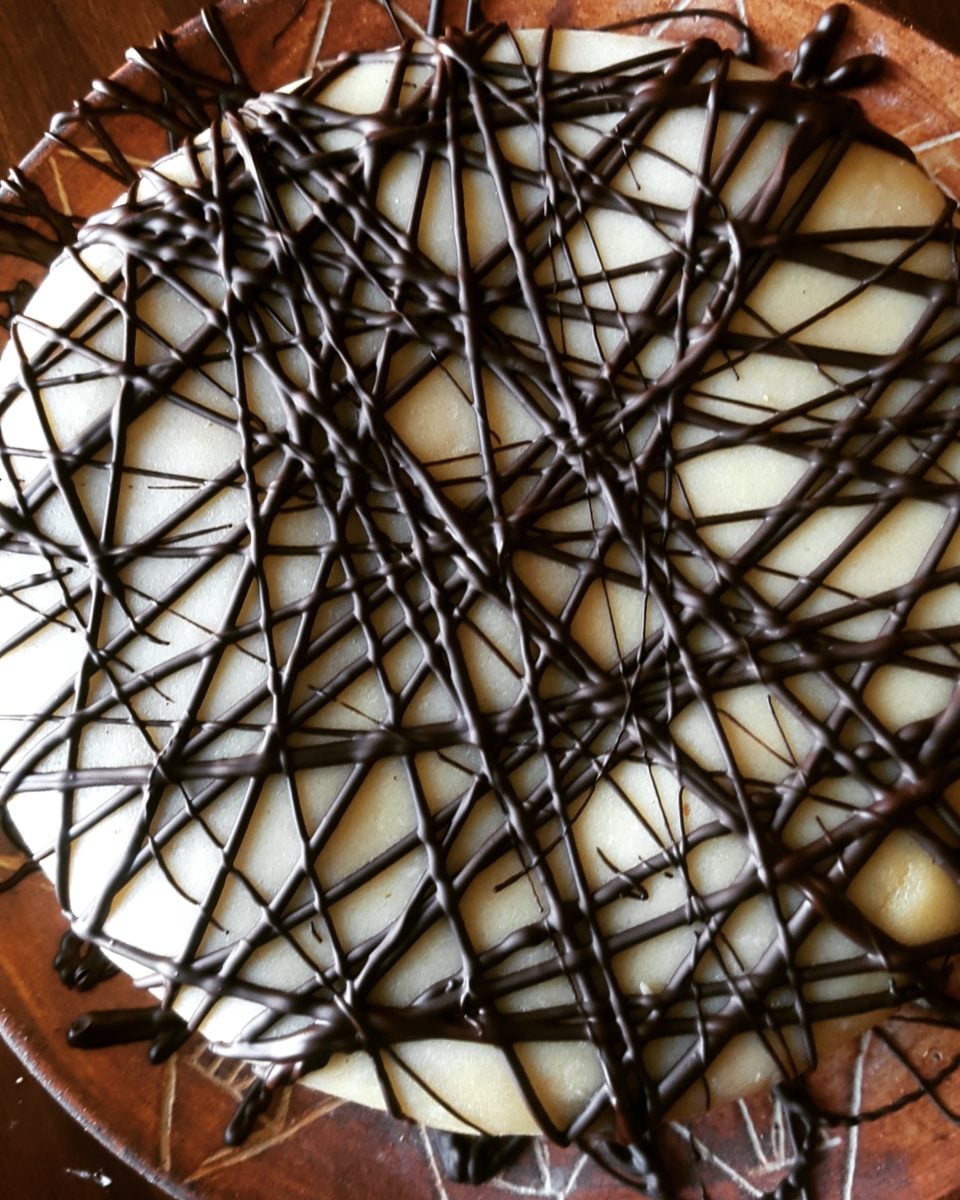 “Torte vorsichtig aus dem Ring lösen und den Marzipankreis darauflegen. Den Tortenrand und