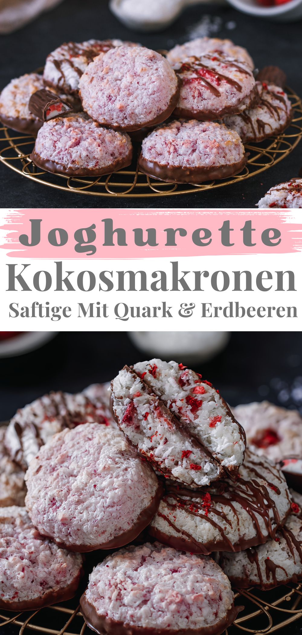 Saftige Erdbeer Kokosmakronen mit Quark und Schokolade