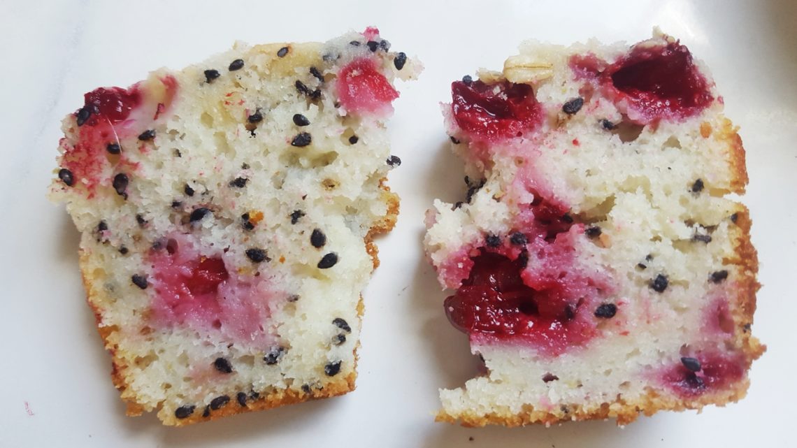 Saftiger Kirschkuchen mit schwarzem Sesam & Limette