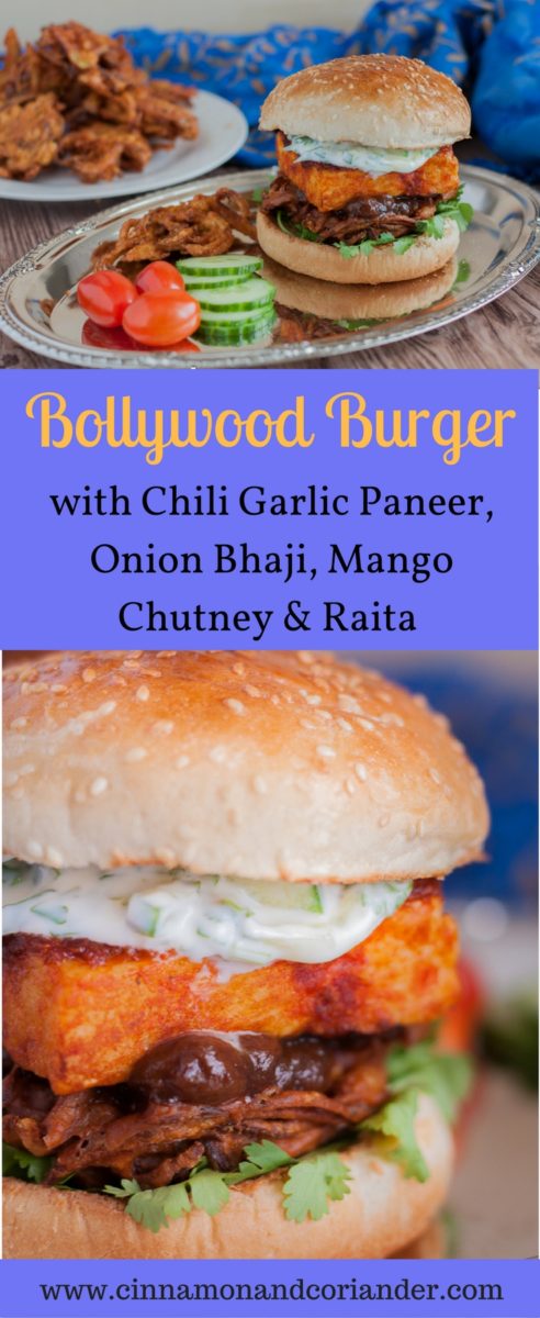 Like the recipe for my Indian-inspired Vegetarian Burger with Onion Bhaji, Chili Garlic Paneer, Chutney & Raita? Pin it!!