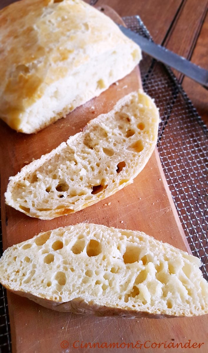 Carefully remove bread to a cutting board and slice with a bread knife.