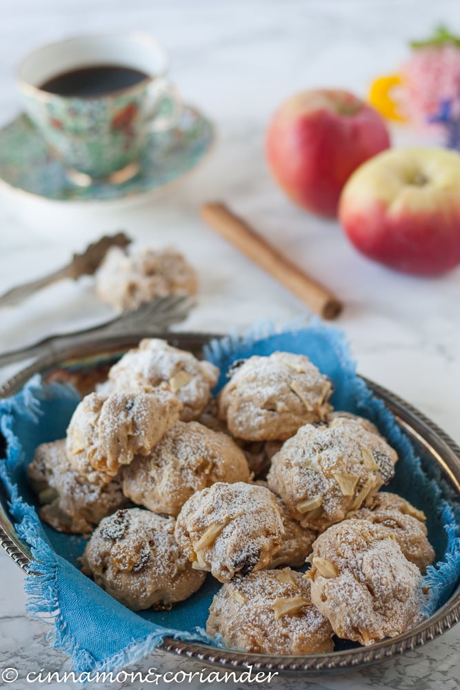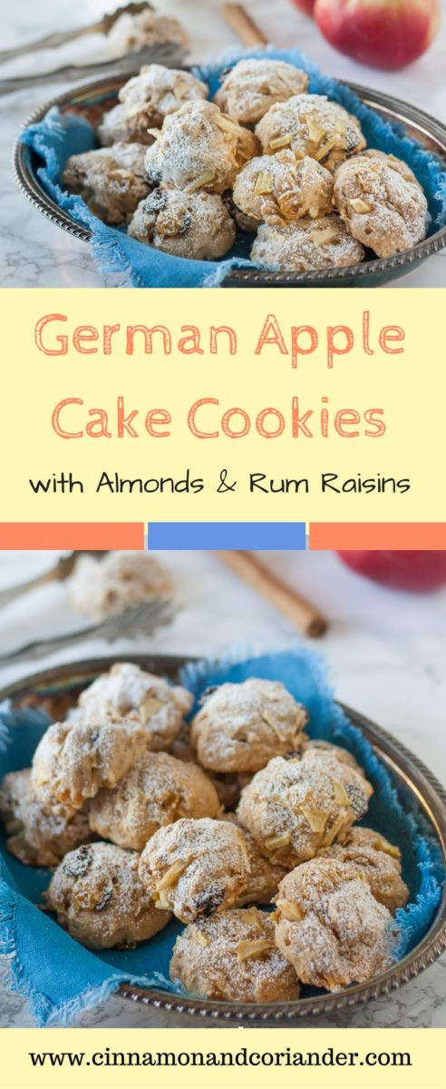 These German Apple Cake Cookies studded with almonds and rum raisins are quick and easy to make and make for the perfect teatime treat!