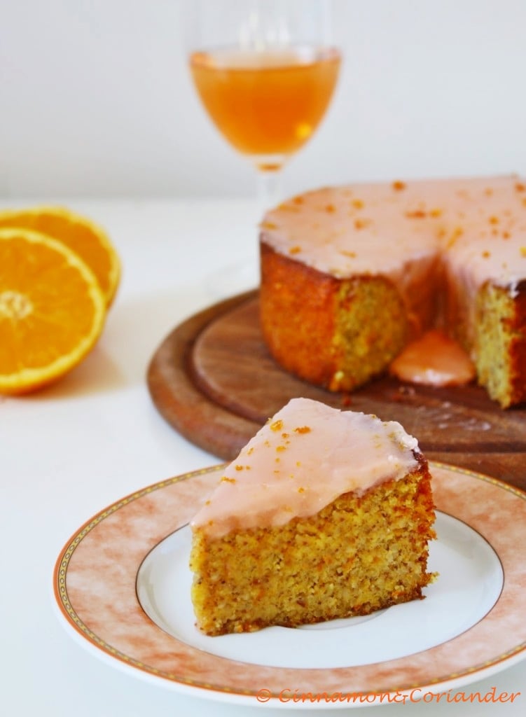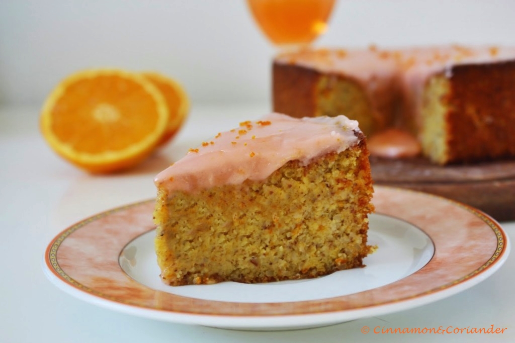 Mix the powdered sugar and the aperol, pour over the cooled cake and decorate with some orange zest.