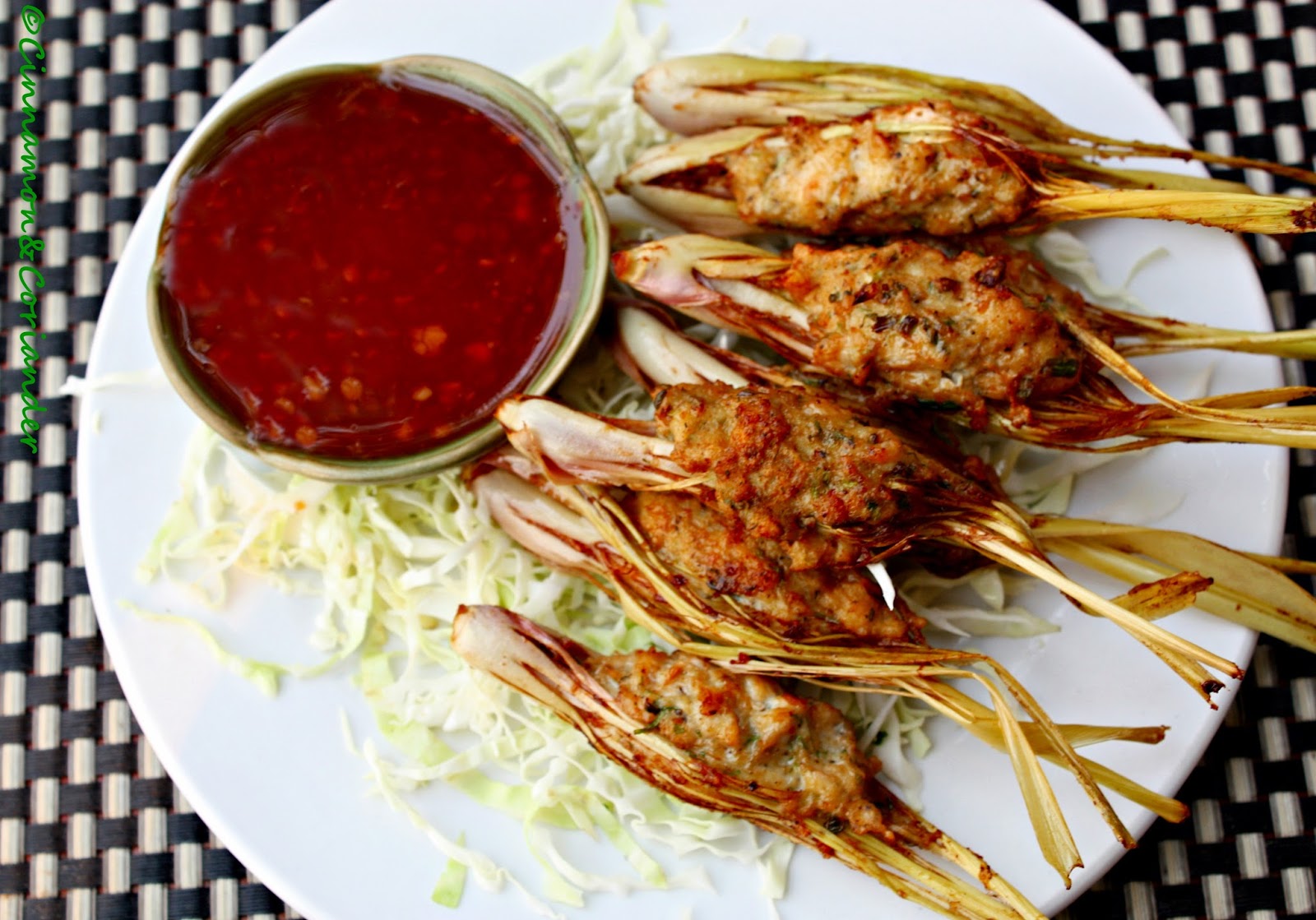 Lemongrass bzw. Zitronengras gefüllt mit einer würzigen Mischung aus Fleisch, Frühlingszwiebeln und Koriander! Ein absoluter Hochgenuss!