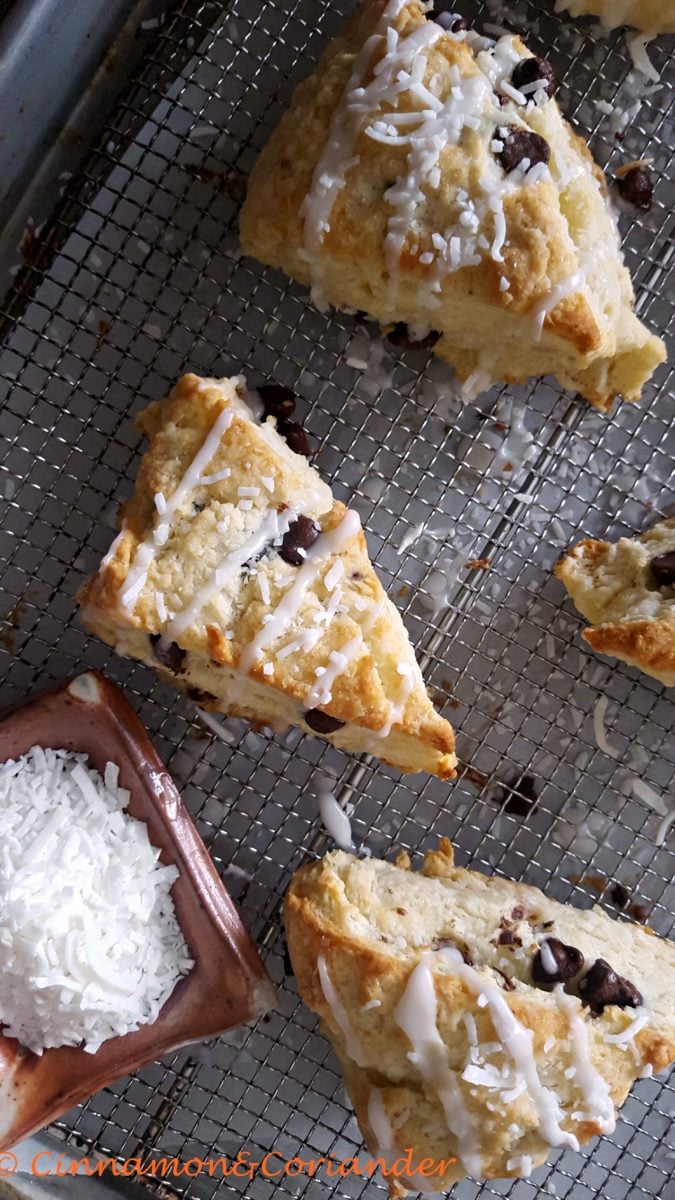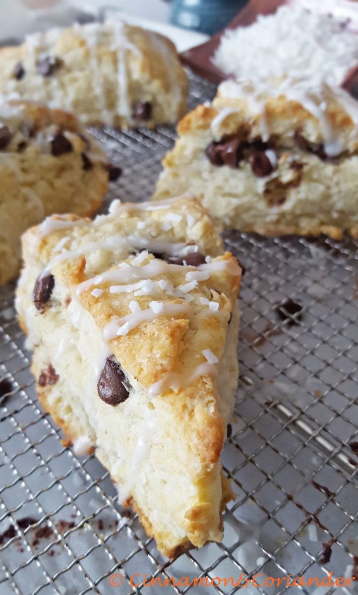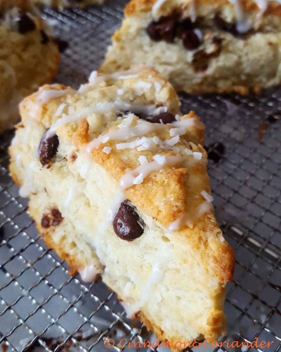 Malibu Glazed Chocolate Chip & Coconut Scones