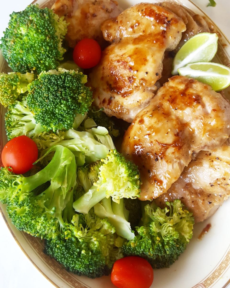 This easy recipe for Sticky Maple Lime & Ginger Chicken Thighs makes for a delicious and healthy low carb weeknight dinner! The marinade bursts with the flavour of lime and ginger and turns into a sticky glaze that coats the tender chicken thighs!