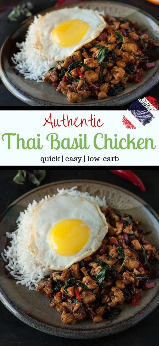 Traditionally, Gai Pad Krapow is served over rice with a fried egg on the side! If you are trying to keep it lean or keto, you can omit the rice and serve it with cauliflower rice or a salad.The list of ingredients for my Spicy Chicken Stir-Fry with Thai Basil and Chilies is quite short, but there’s one ingredient I would like explain to you a bit further. You guessed it: Basil.